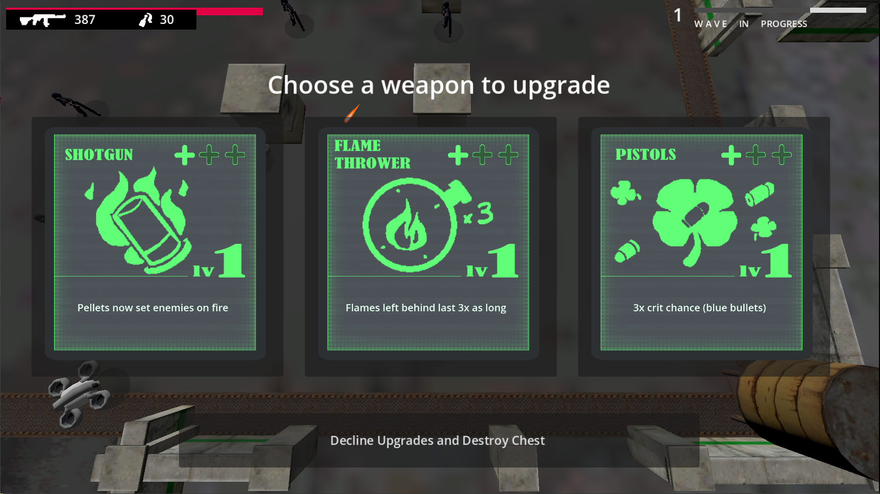 - 3 levels of upgrades for each weapon